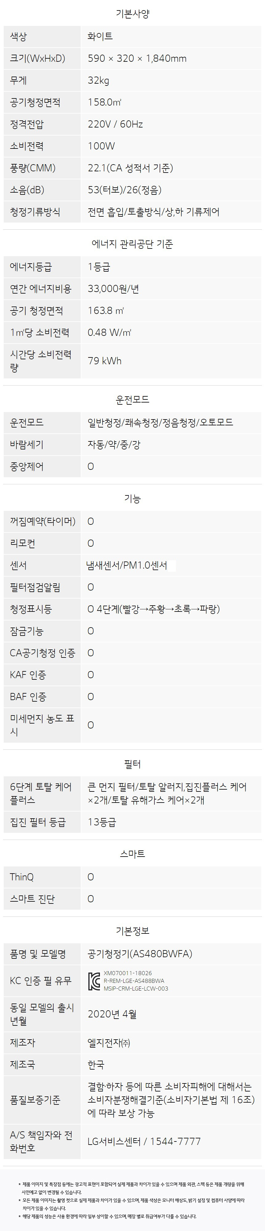 LG Ç»¸®Äɾî (48ÆòÇü) ´ëÇü°ø±âûÁ¤±â (AS480BWFR) 3³âÀǹ«